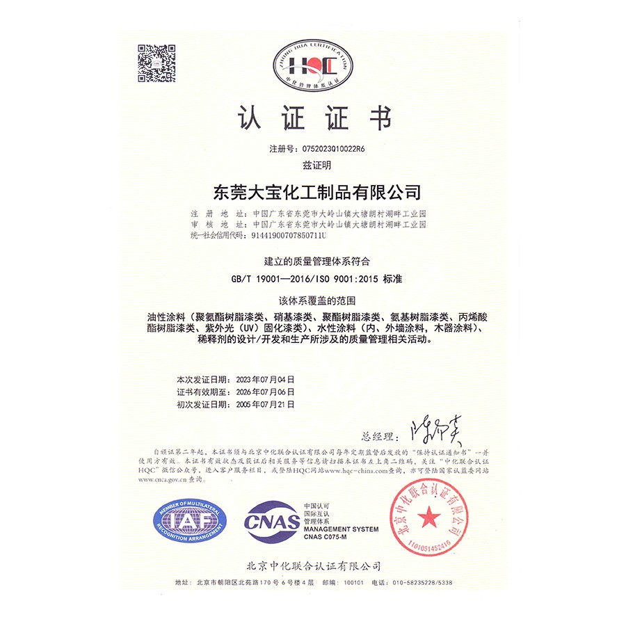 ISO9001質(zhì)量管理體系認證(東莞大寶)