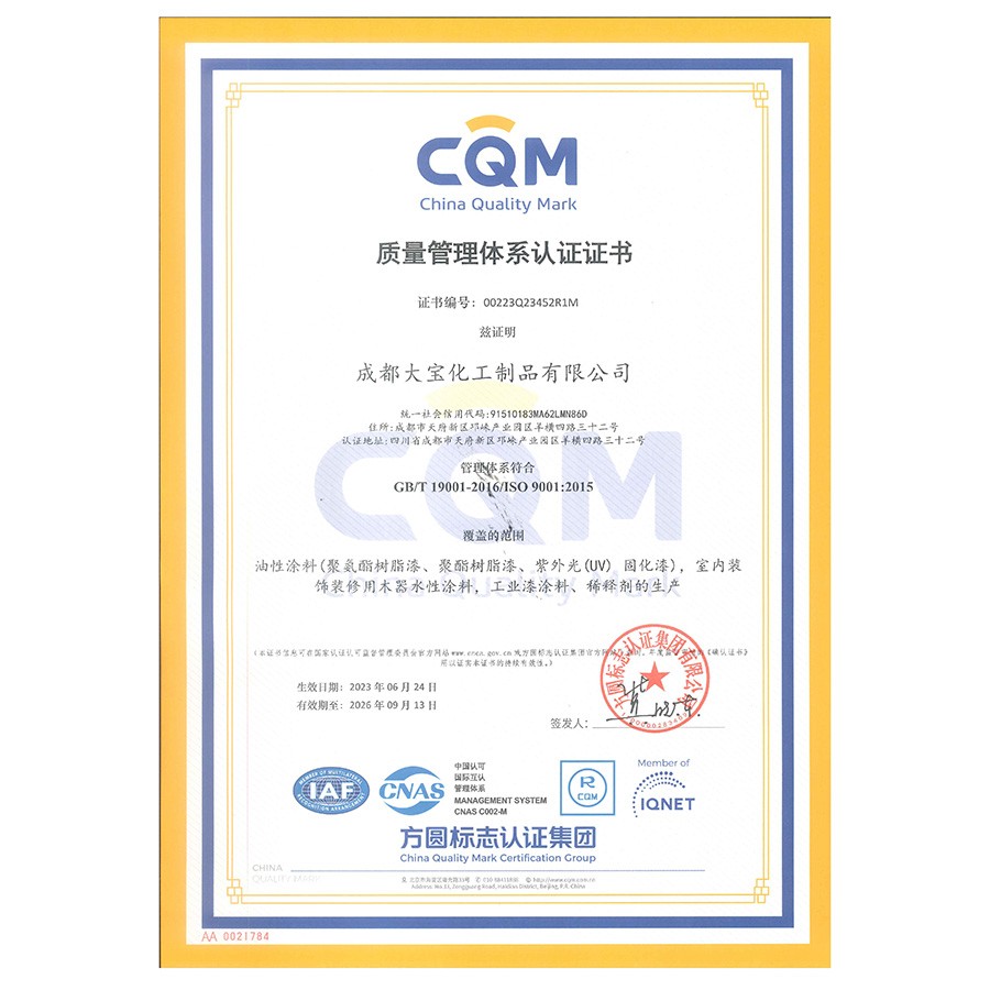 ISO 9001質(zhì)量管理體系認證(成都大寶)