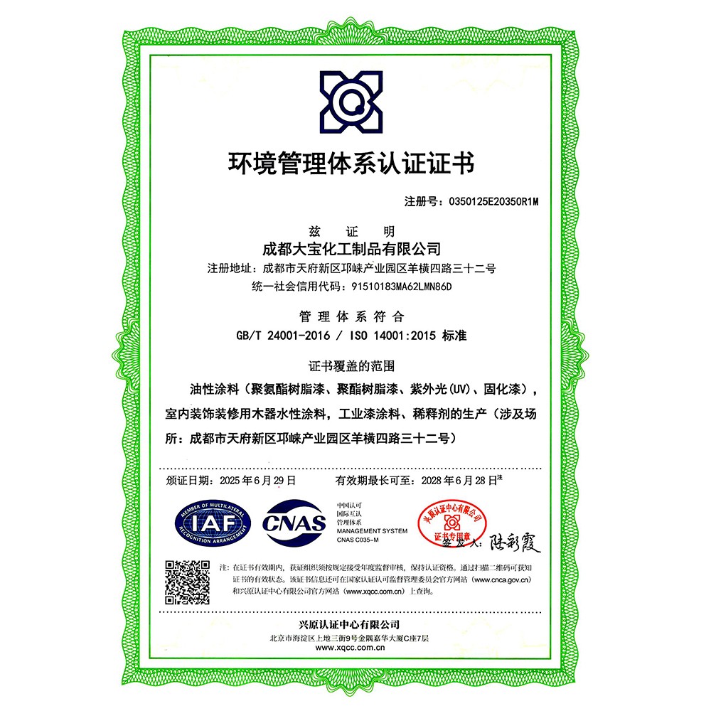 環(huán)境管理體系認證(成都大寶)