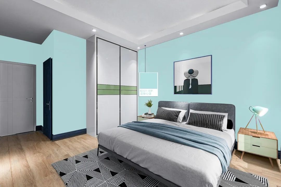 在白色空間加入一面粉綠色系的墻面,建立鎮定與舒緩的空間調性,能獲得放松與自在,打造生氣蓬勃,清爽日常的居家配色。藍緣心語介于藍與綠的中間色,有著藍色的沁涼感及綠色的生命力,不像黑白色過于單調,也不像熒光色那般刺眼的令人無措,配上淺木色地板增加整體空間的溫度,淺淺的綠適度的增加空間色彩,是多數人都能接受的居家配色喔!