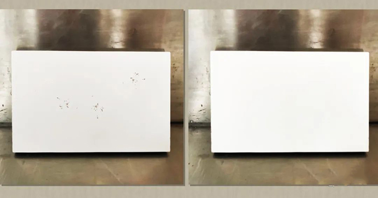 ▲在三聚氰胺板直接涂水性漆白面,經(jīng)30次冷熱循環(huán)后的密著性測試