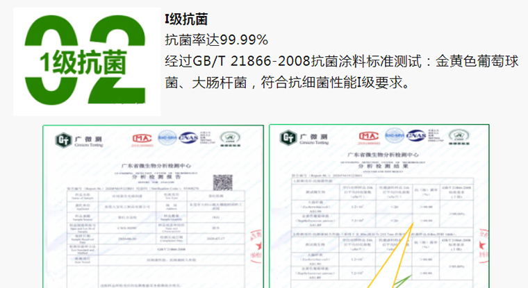 I級抗菌:抗菌率≥99.99%,減少細菌危害,多一份健康呵護!