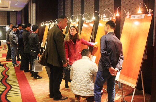 此外,與會者就大寶水性漆產品、寶宮石系列產品、歐式涂裝等產品工藝,提出自己的疑問,與專業人員進行溝通交流,并就當前的市場狀況等表達了自己的看法與見解。會議期間,還進行了色板展示,供與會人員觀察了解歐式透明涂裝、水性木器漆、寶宮石等產品工藝的實際涂裝效果。