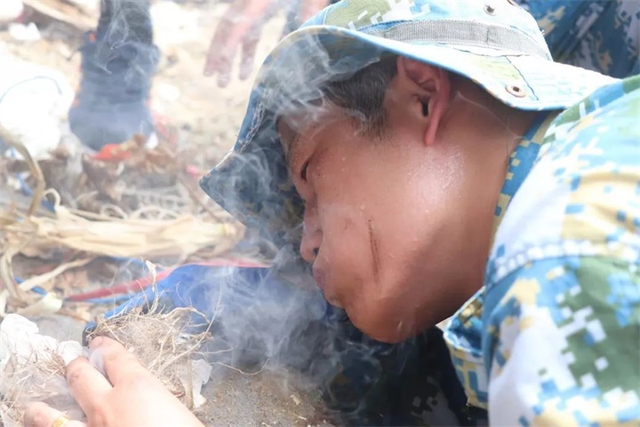 特訓從基本隊列動作訓練開始,隨后進行五大項目考驗:鉆木起火、移花接木、風雨人生路、解碼行動及穿越黑洞,每一個項目的設置,都需要團隊的協作才能完成最終的任務,其中鉆木起火任務中,兩隊參賽隊員通過團隊協作,合理運用起火工具,僅用時26分鐘就點燃了生命之火,此用時也打破了拓展行業內所有參訓企業最快45分鐘的起火記錄。