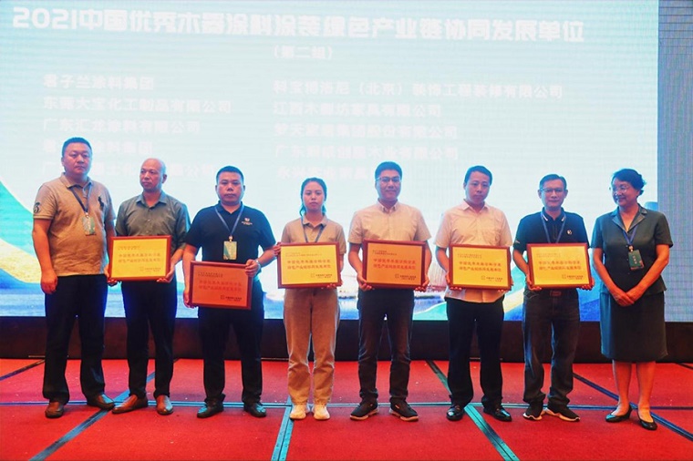 研討會現場,重點對“2021中國優秀木器涂料涂裝綠色產業鏈協同發展單位”進行了表彰與聯合授牌。大寶漆以優秀的環保涂裝解決方案和創新的領先服務優勢,致力于推動上下游產業鏈協同綠色發展,與江西木御坊家具有限公司保持深度合作,攜手推進“協同發展、綠色制造”的成績獲得行業協會一致認可,被分別授予該項榮譽獎牌,也是對大寶漆賦能環保、積極推動上下游產業鏈協同綠色發展的肯定。