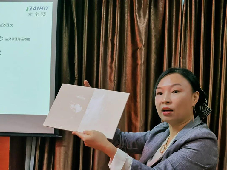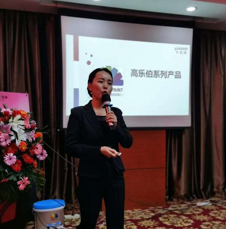 在進口品牌荷蘭高樂伯涂料(GLOBAL PAINT)產品介紹和技術交流環節,培訓學校夏秀麗老師對高樂伯品牌的發展、產品體系、歐洲環保認證、產品體驗、配套輔材等內容穿插播放產品廣告片視頻,完整有系統地介紹高樂伯涂料的產品亮點和優勢。