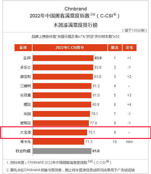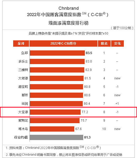 彰顯品牌韌性|大寶漆再度上榜中國(guó)顧客滿意度指數(shù)排行榜