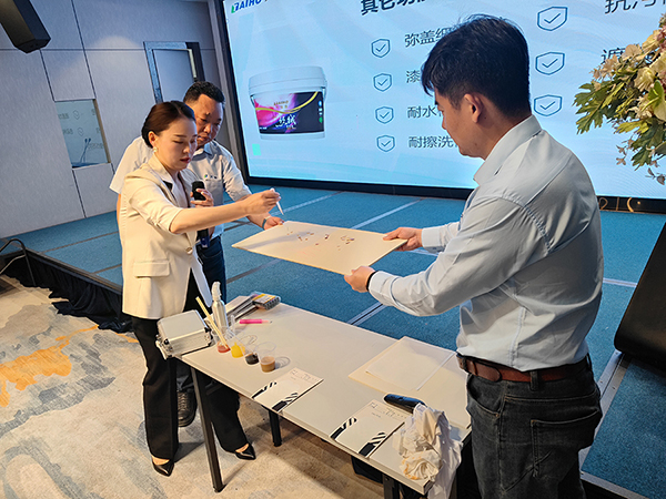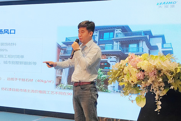 中南區業務主管卓杰分享2024 大寶仿石漆盈利模式和市場前景,詳細解讀大寶仿石漆特點和優勢,引起與會者對于產品的興趣和關注,為產品的推廣打下了良好的基礎。