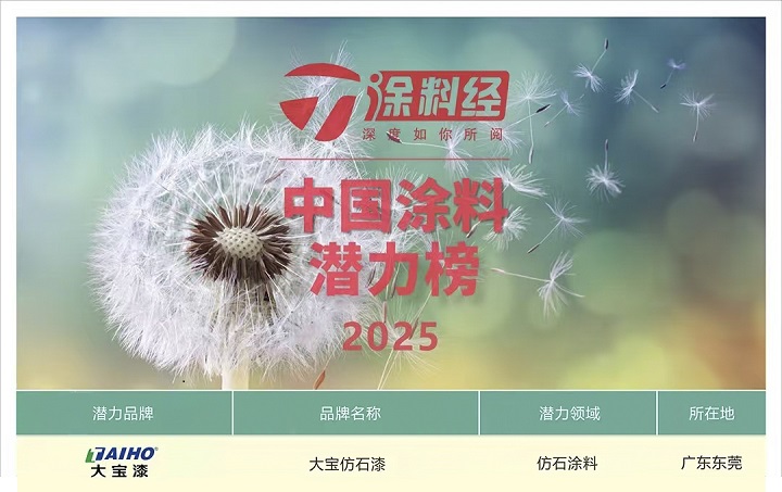 實力登榜│大寶仿石漆入選“2025中國涂料品牌潛力榜”