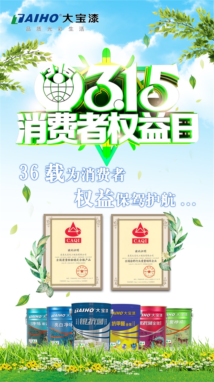 引導(dǎo)質(zhì)量消費,建設(shè)質(zhì)量強國。日前,從國家質(zhì)檢總局主管的中國質(zhì)量檢驗協(xié)會傳來喜訊,在中檢協(xié)舉辦的2019年“3.15”國際消費者權(quán)益日活動中開展“產(chǎn)品和服務(wù)質(zhì)量誠信承諾”主題活動中,大寶漆憑借過硬的質(zhì)量榮獲“全國涂料行業(yè)質(zhì)量領(lǐng)軍企業(yè)”和“全國質(zhì)量檢驗穩(wěn)定合格產(chǎn)品”殊榮。