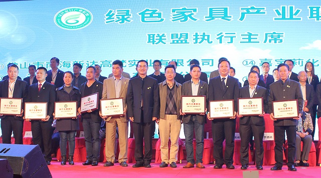 在授牌儀式上,廣東省家具協(xié)會會長王克代表聯(lián)盟領(lǐng)導(dǎo)小組在會上致辭。他表示,感謝廣東家具行業(yè)、涂料行業(yè)、林業(yè)產(chǎn)業(yè)的企業(yè)對聯(lián)盟的信任和寄予的期望。綠色家具產(chǎn)業(yè)聯(lián)盟本著對聯(lián)盟發(fā)展宗旨的負責態(tài)度,經(jīng)過對申報企業(yè)的資格評價,最終在三個行業(yè)中選出了33家企業(yè)作為綠色家具產(chǎn)業(yè)聯(lián)盟的首批成員企業(yè)。今天,舉行隆重的授牌儀式,是向社會發(fā)起大力發(fā)展綠色家具消費的一個產(chǎn)業(yè)倡導(dǎo),聯(lián)盟成員要共同著力打造家具綠色、環(huán)保、生態(tài)、可循環(huán)發(fā)展的產(chǎn)業(yè)鏈。