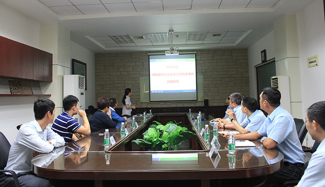 座談會上,大寶培訓學校曾艷麗老師先向王董事長介紹了大寶化工的廠區規劃及發展狀況,使王董事長一行對大寶有了初步的認識。黃文敏校長向在座人員隆重介紹了大寶水性木器漆及智能涂裝測試線的情況,他結合實際案例闡述了目前大寶水性涂料的能夠達到怎樣的涂裝效果及所取得的成績。