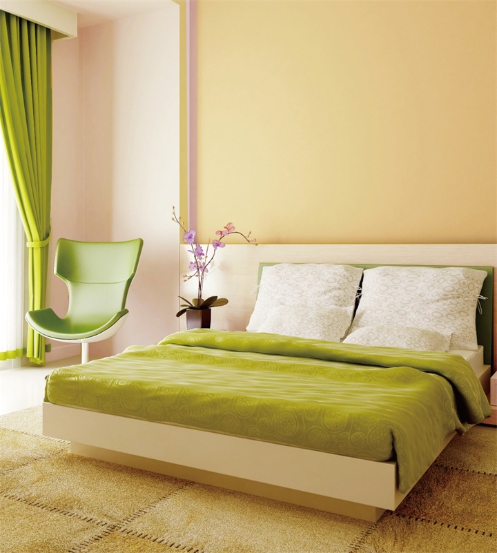 煙波藍與珍珠粉的淺色系墻面配色運用,使空間變得水嫩活潑。配以鮮綠色和橙黃色的家具作為點綴,則具有畫龍點睛的效果。